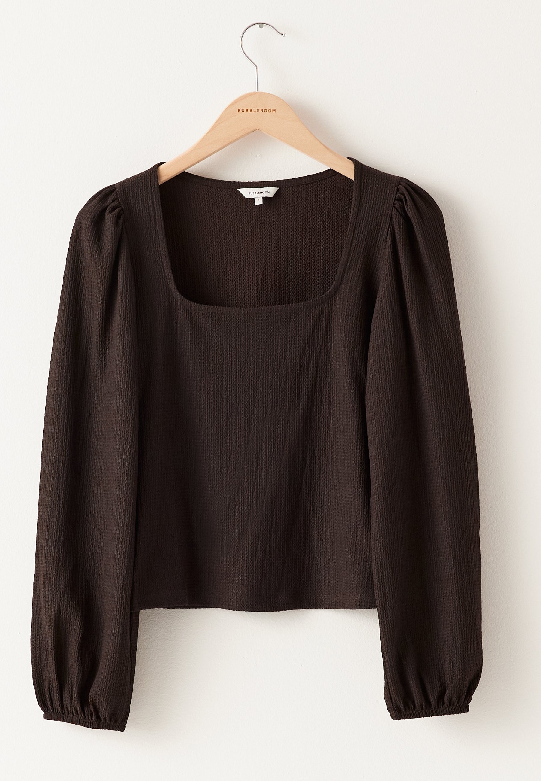 - Squared neckline