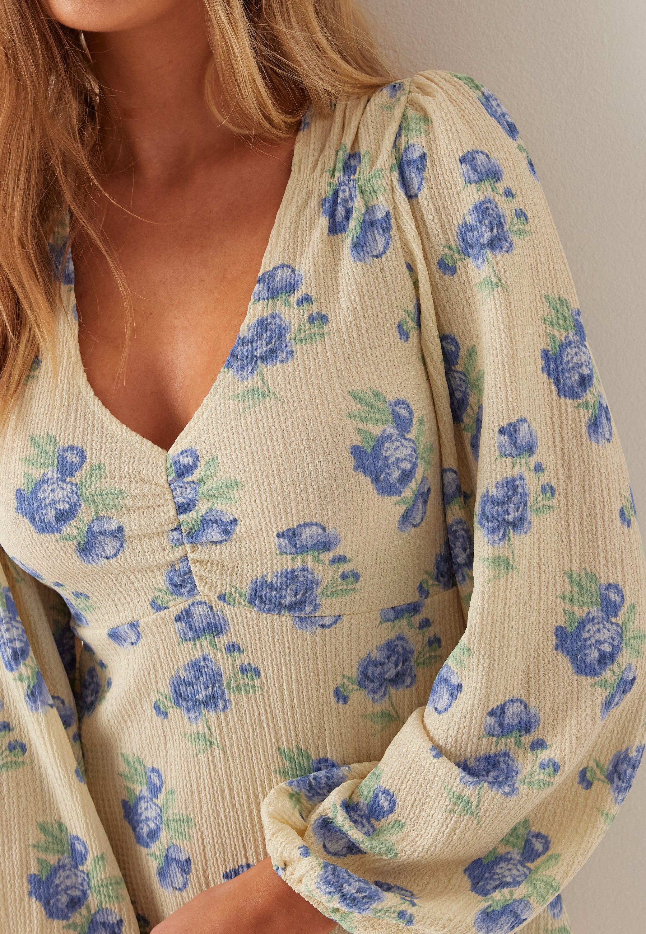 - Ruching at the bust