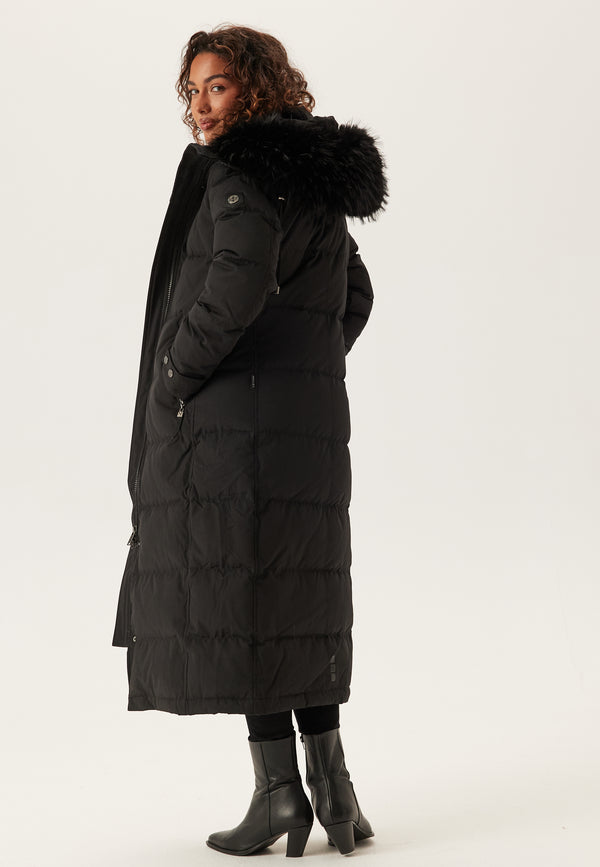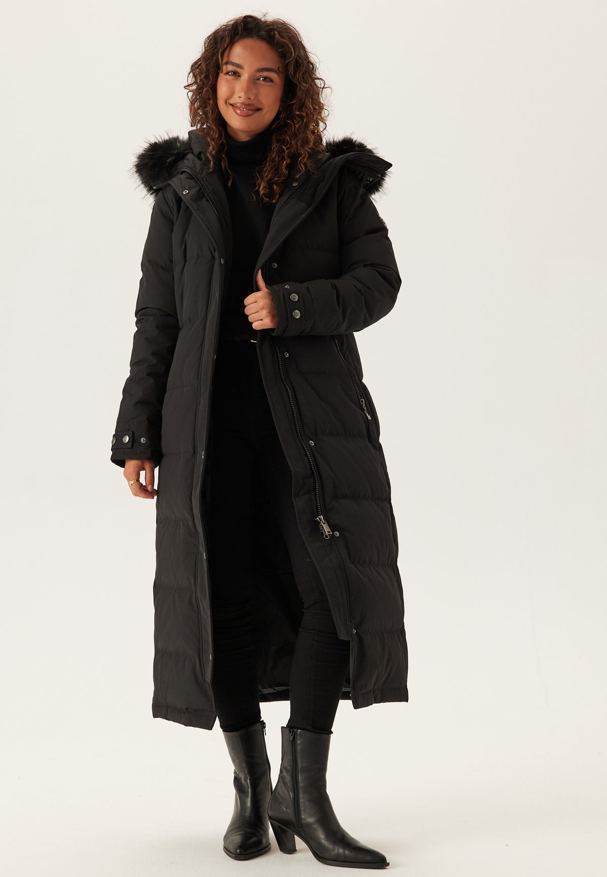 - Zwarte en verwijderbare afwerking van namaakbont op de capuchon