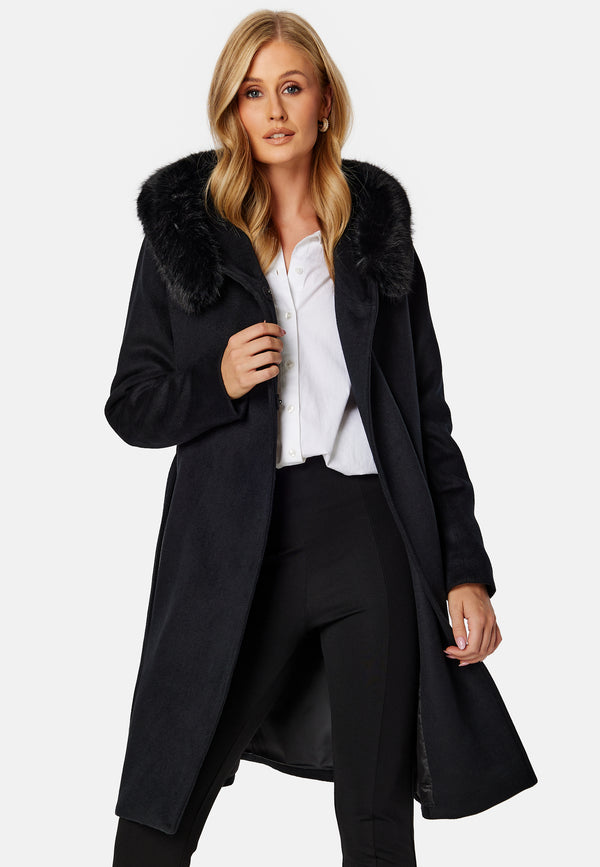 Sierlijke jas van ROCKANDBLUE met een strikband Het heeft namaakbont