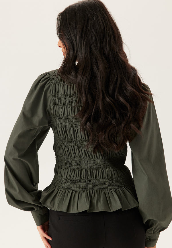 - V-vormige neklijn met ruche aan de bovenkant